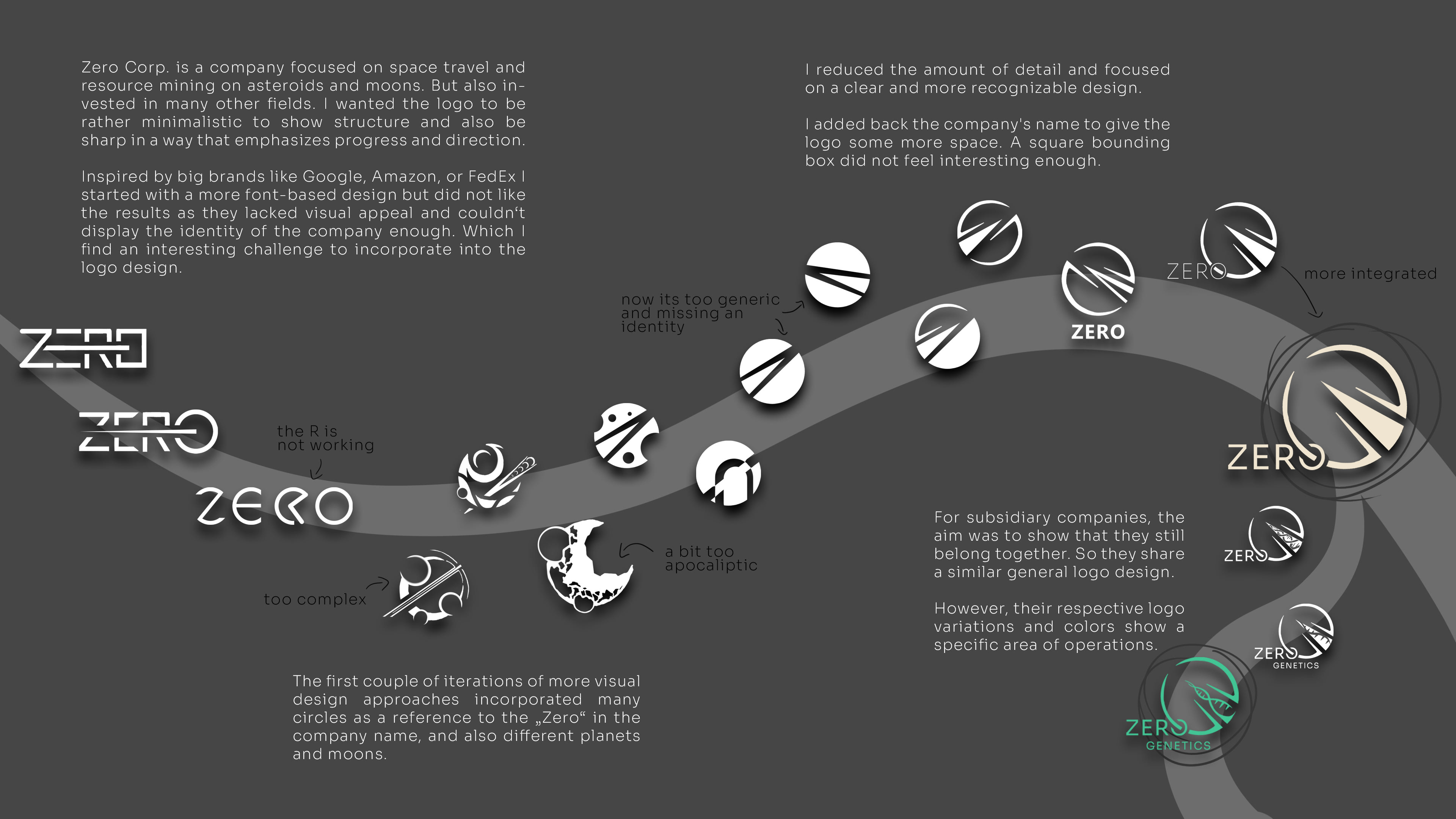 Here I am showing some steps on the way to the final logo for Zero Corp. Which is the most important corporation in my fictional world.
